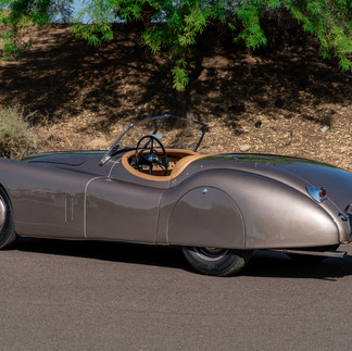 Fast forward to 2023 and quite possibly one of the best true barn find stories is the complete and extensive restoration project taken on by Bill Wallace and his team at Impact Collision Shop in beautiful Fountain Hills, Arizona. Our information is that this is in fact one of the six Jaguar XK120's that raced in the Race of Champions on May 10th, 1952. Every single nut and bolt had undergone a complete, frame off, restoration. This not only brought it back into working order, but better than factory spec.